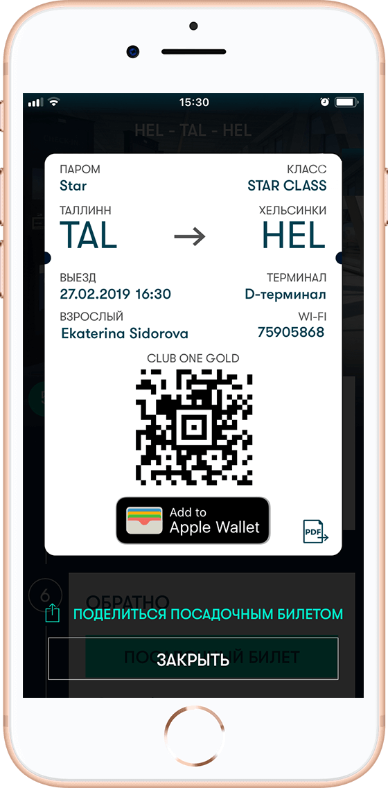 - Зарегистрируйте билет в приложении Tallink.